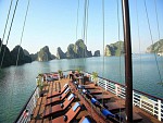 Attend the Cooking class on sundeck – How to make Vietnamese spring rolls - traditional Vietnamese food. Then enjoy Happy Hour (Buy one drink-get one free). It is time for chit chat and relaxing. Watch the magnificent sunset over Halong Bay.