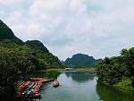 15:00 Cycle for an hour (5 km) on quiet and peaceful roads through ancient villages, rice fields, rocky outcrops and rivers in Tam Coc - Bich Dong.
